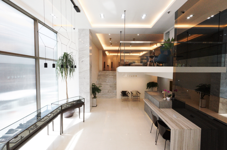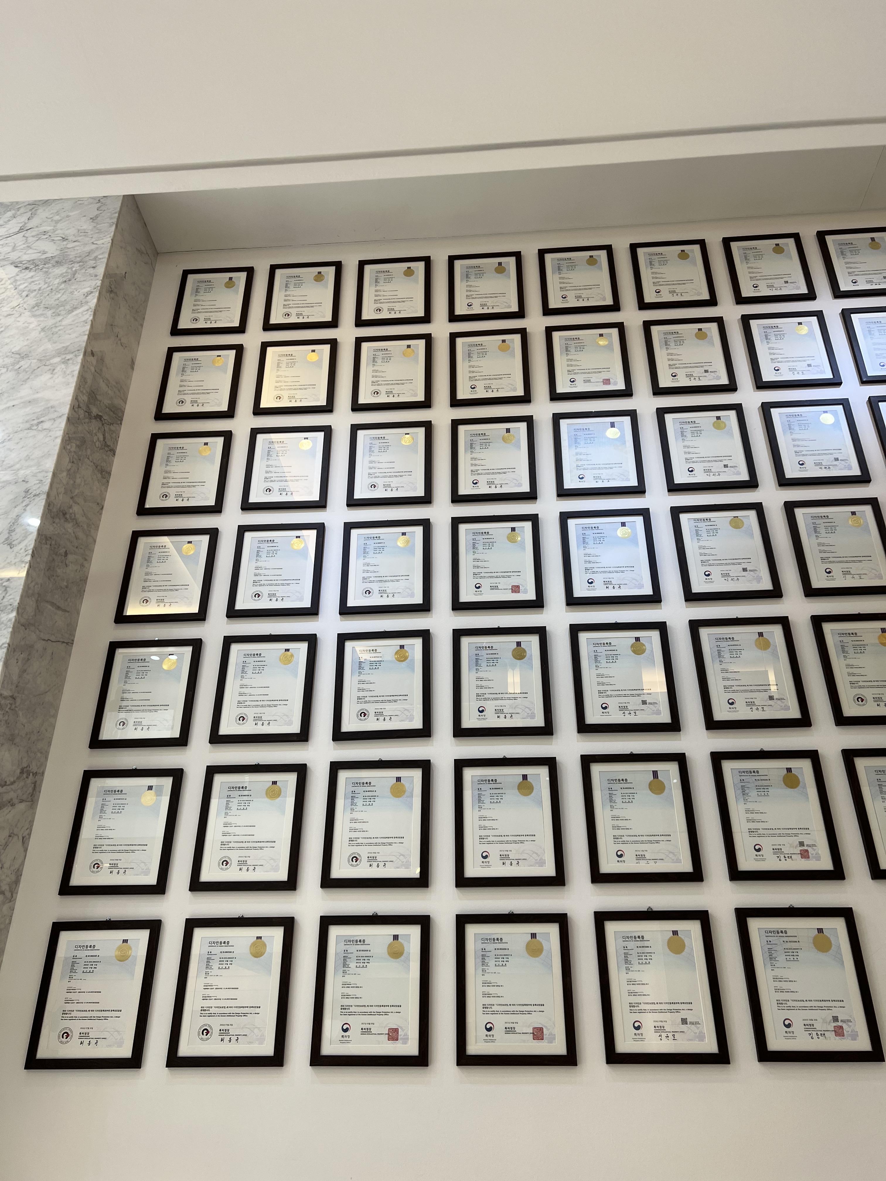 매장은 1, 2층 복층으로 이루어진 구조였는데, 때문에 1층 층고가 높았습니다. 처음 들어갈 때 층고때문에 고급스럽고 아늑한 분위기가 인상적이었습니다. 1층에는 카운터와 시제품들, 디자인특허등록증 등이 전시되어 있었고, 그런 점에 있어서 신뢰가 가기도 하였습니다. 화장실도 1층에 위치해서 편안하게 사용할 수 있어서 아주 좋았습니다.