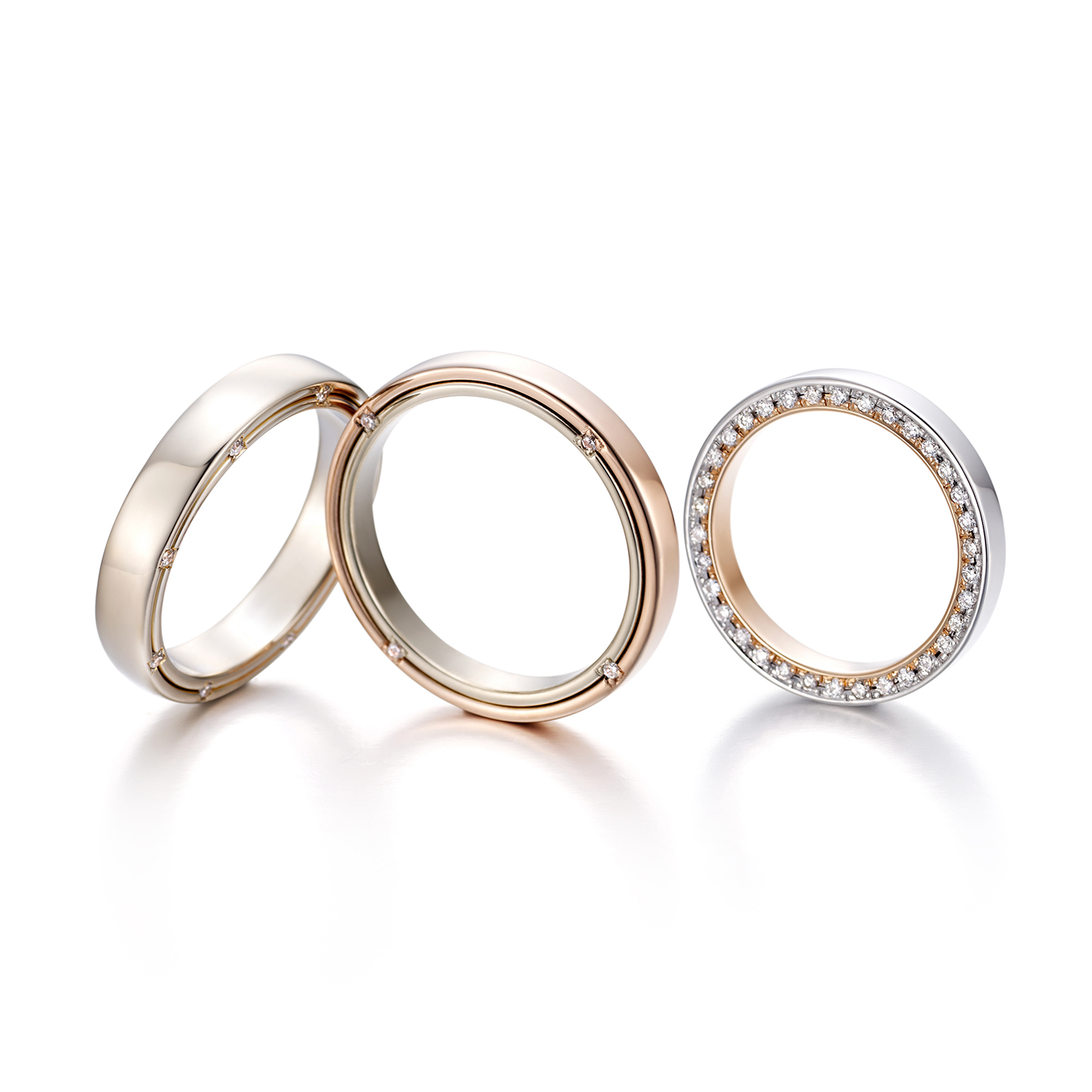 가장 큰 특징은 크기와 컬러가 다른 두 개의 링이 하나로 합쳐진 모습이었습니다. 이 색은 서로의 기본 색깔을 공유하고 있기 때문에 신랑신부가 항상 함께 있다는 뜻을 가지고 있습니다.