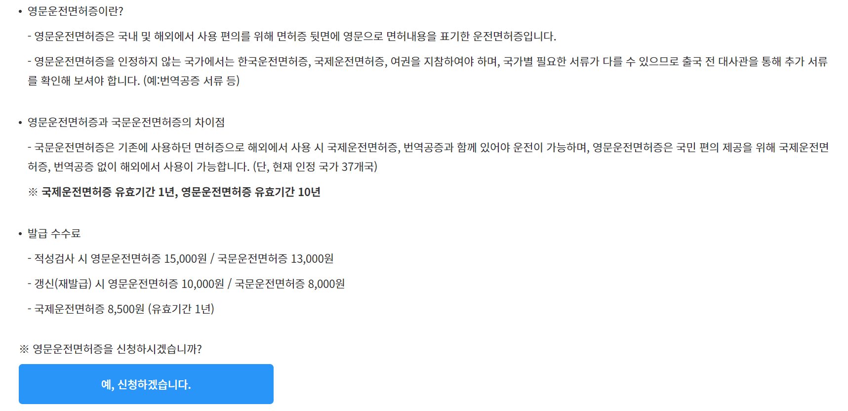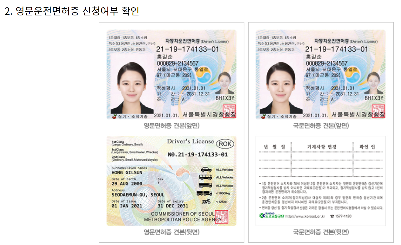 (1) 모바일 운전면허증과 (2) 영문운전면허증이 있어요! 저는 둘 다 선택해봤습니다~~