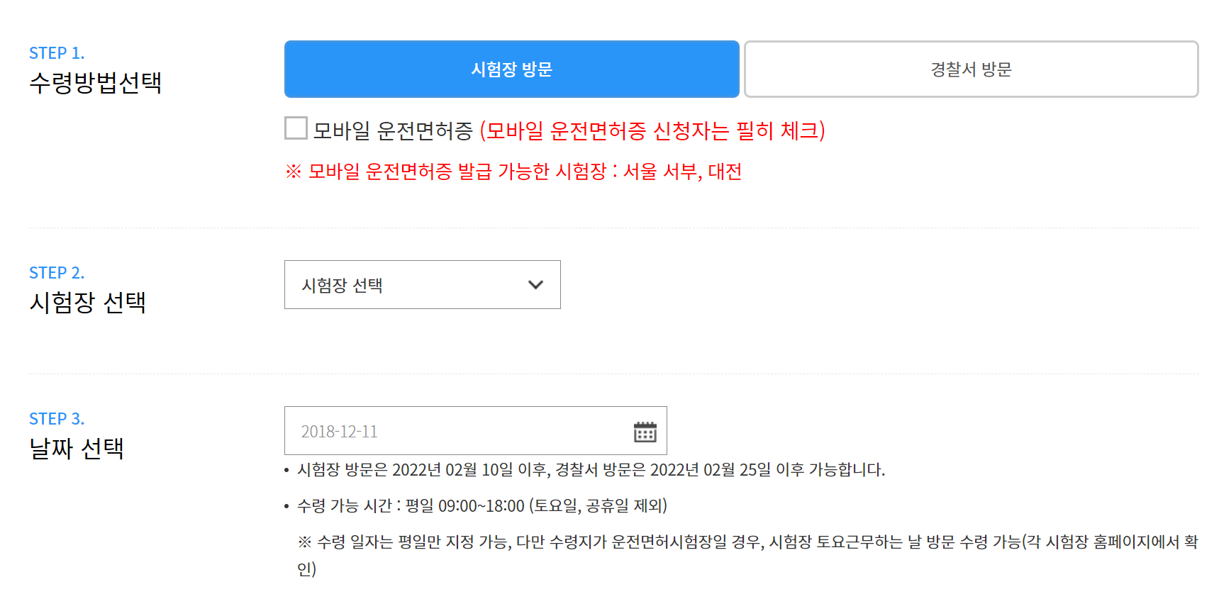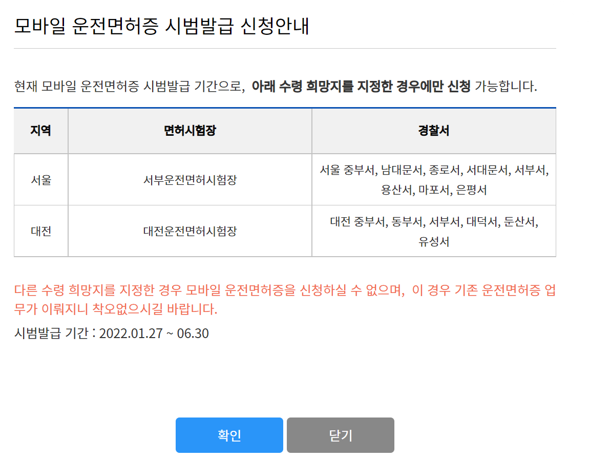 다만, 수령 가능한 시험장과 경찰서가 아래와 같이 한정되어 있으니 참고하세요!