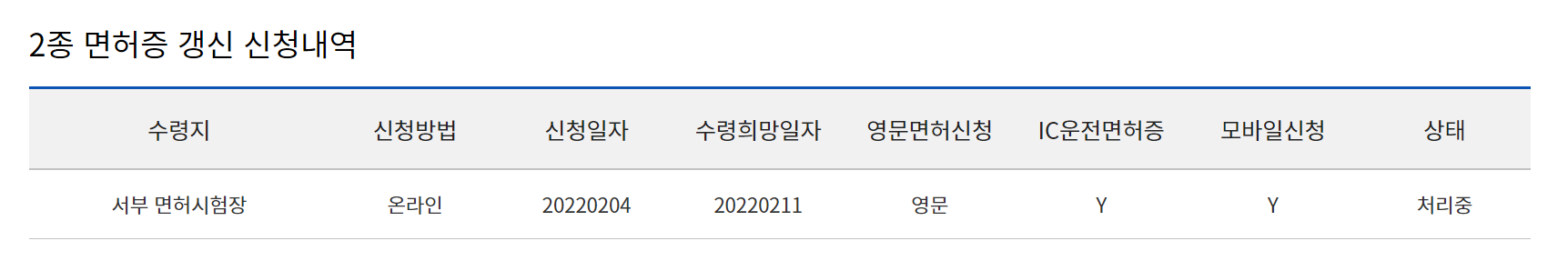 14. 이렇게 면허증 갱신 신청이 완료되었습니다~~