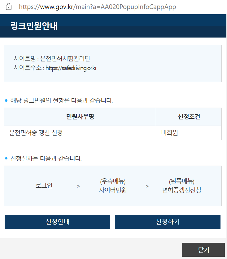 운전면허증 갱신 신청 | 민원안내 및 신청 | 민원24 | 정부24 (gov.kr)